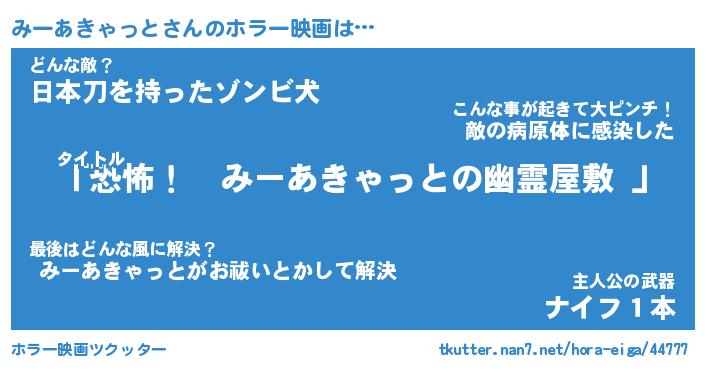 | 伝説のあだ名 | 『伝説のスナイパーみーあきゃっと』 |