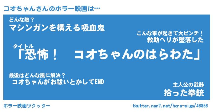 | 胡散臭い通販商品みたいなあだ名 | 『必ず成功するブレスレット…その名も「コオちゃん」』 |
