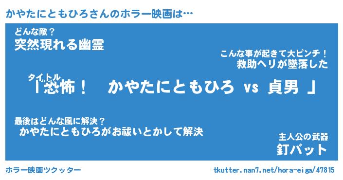 | 胡散臭い通販商品みたいなあだ名 | 『モテモテ間違いなし霊験あらたかなお札…その名も「かやたにともひろ」』 |