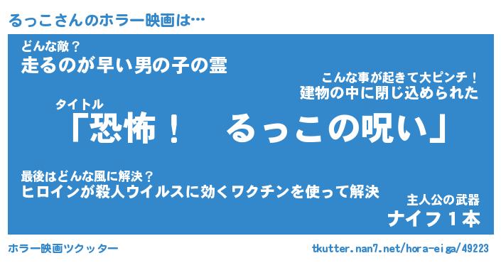 | 男性向けラノベタイトル風あだ名 | 『るっこの憂鬱』 |