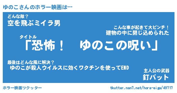 | 男性向けラノベタイトル風あだ名 | 『ゆのこの憂鬱』 |