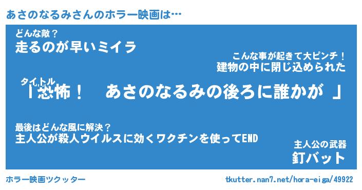 | ヒーロー風カッコイイあだ名 | 『スーパーアサノナルミ』『幻影騎士アサ』 |