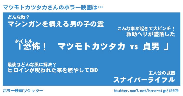 | 男性向けラノベタイトル風あだ名 | 『マツモトカツタカの憂鬱』 |