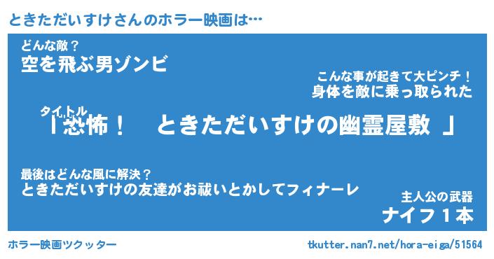 | 男性向けラノベタイトル風あだ名 | 『ときただいすけの憂鬱』 |