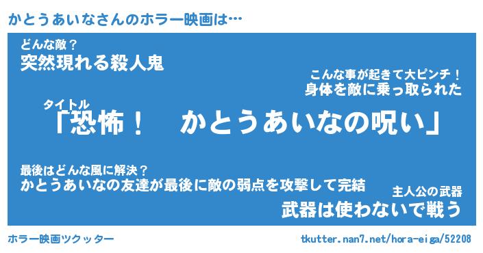 | ヒーロー風カッコイイあだ名 | 『スーパーカトウアイナ』『幻影騎士カト』 |