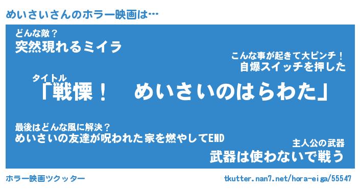 | ヘコむあだ名 | 『めいにー』『なまこ酢』『めいを』 |