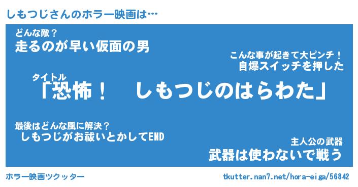 | 男性向けラノベタイトル風あだ名 | 『しもつじの憂鬱』 |
