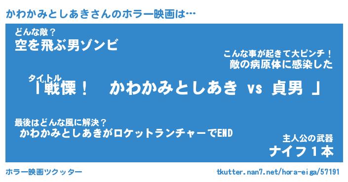 | 胡散臭い通販商品みたいなあだ名 | 『モテモテ間違いなし霊験あらたかなお札…その名も「かわかみとしあき」』 |
