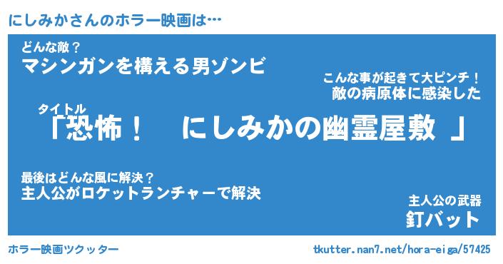 | 男性向けラノベタイトル風あだ名 | 『にしみかの憂鬱』 |