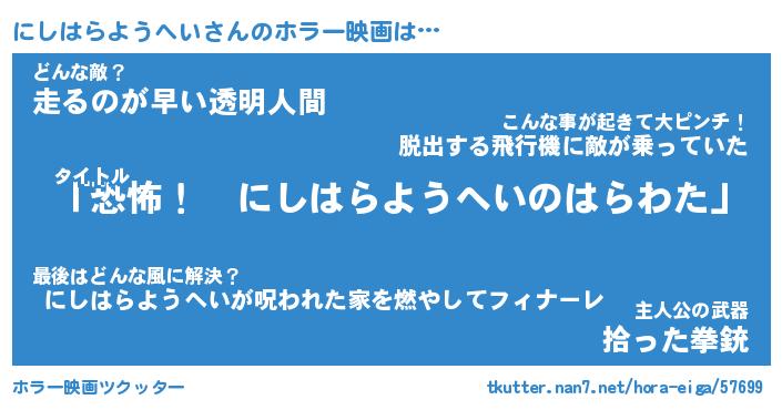 | 胡散臭い通販商品みたいなあだ名 | 『必ず成功するブレスレット…その名も「にしはらようへい」』 |