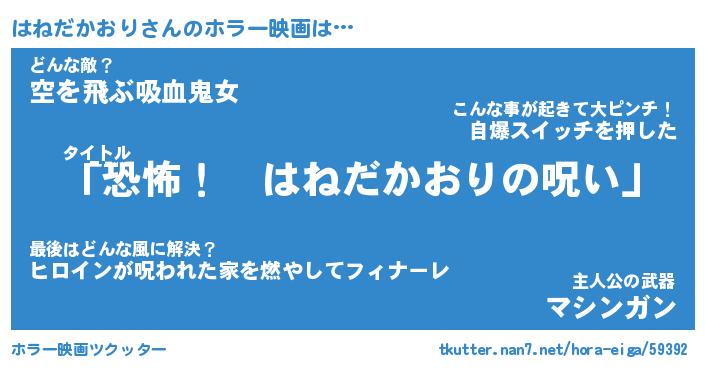 | 男性向けラノベタイトル風あだ名 | 『はねだかおりの憂鬱』 |