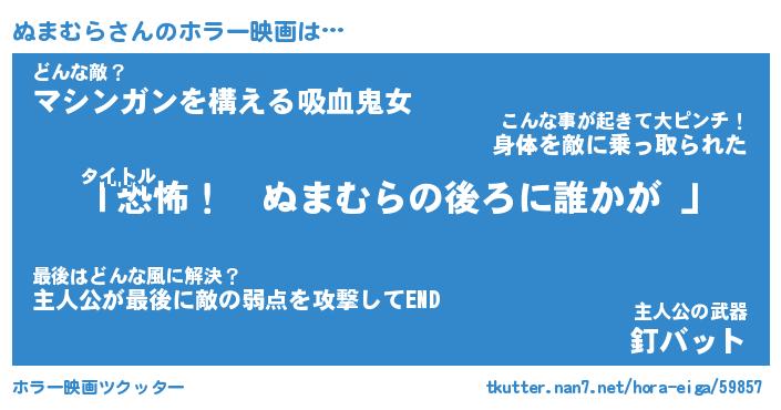 | 男性向けラノベタイトル風あだ名 | 『ぬまむらの憂鬱』 |