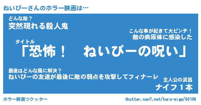| 男性向けラノベタイトル風あだ名 | 『ねいびーの憂鬱』 |