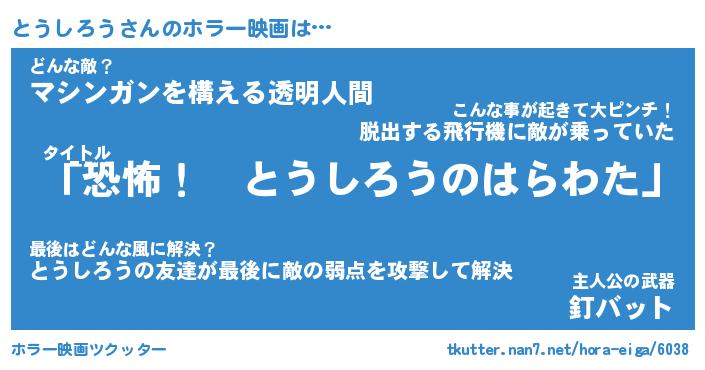 | 男性向けラノベタイトル風あだ名 | 『とうしろうの憂鬱』 |