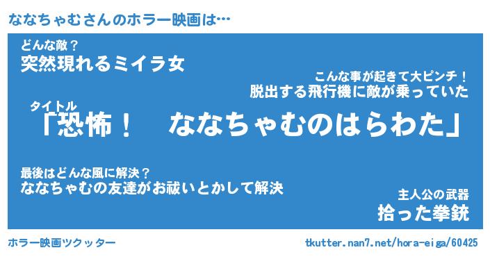 | 男性向けラノベタイトル風あだ名 | 『ななちゃむの憂鬱』 |