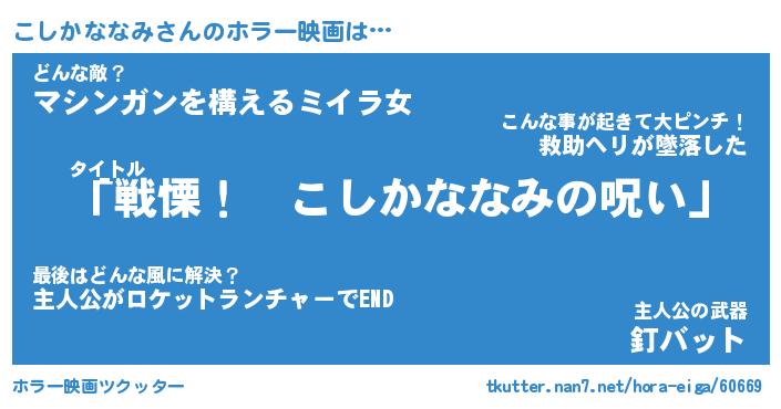| ヒーロー風カッコイイあだ名 | 『スーパーコシカナナミ』『天弓騎士コシ』 |