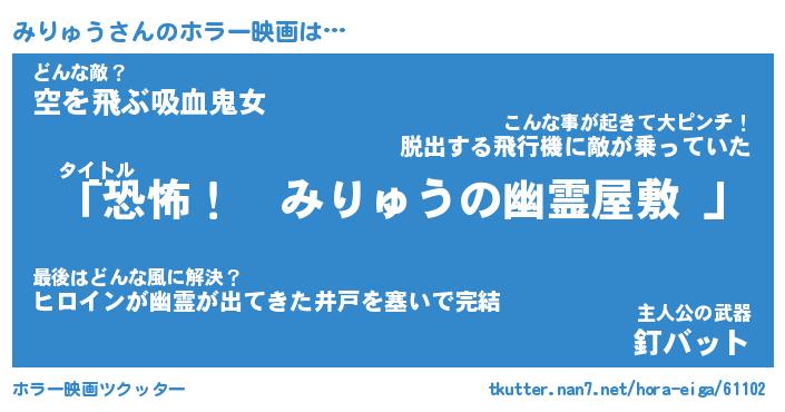 | 男性向けラノベタイトル風あだ名 | 『みりゅうの憂鬱』 |