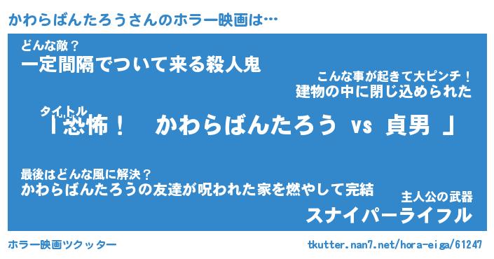 | 男性向けラノベタイトル風あだ名 | 『かわらばんたろうの憂鬱』 |