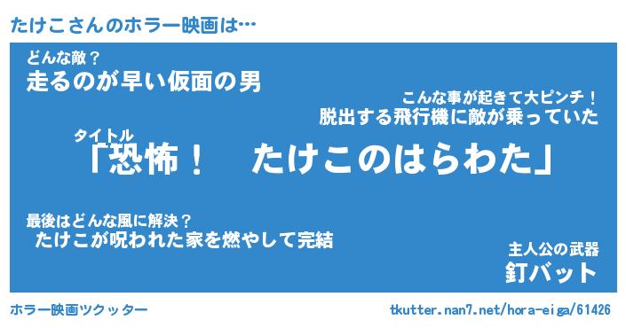 | 男性向けラノベタイトル風あだ名 | 『たけこの憂鬱』 |