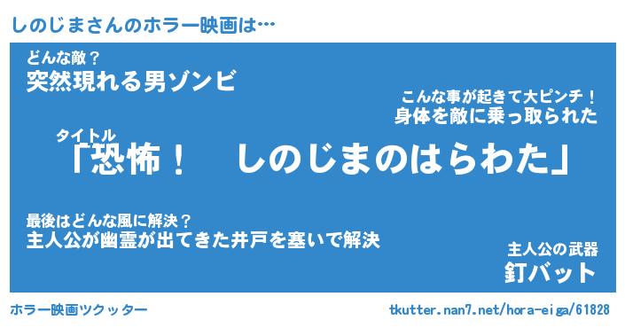 | 男性向けラノベタイトル風あだ名 | 『しのじまの憂鬱』 |
