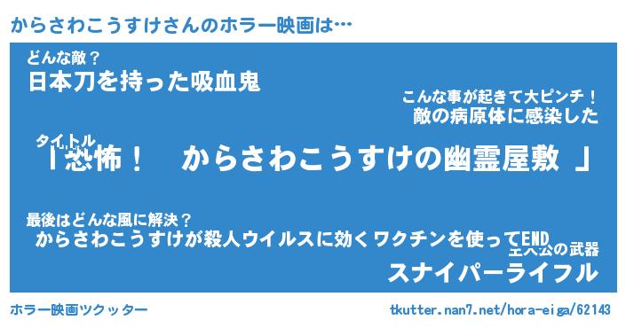 | 男性向けラノベタイトル風あだ名 | 『からさわこうすけの憂鬱』 |