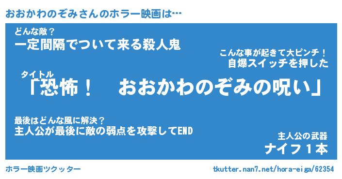 | 男性向けラノベタイトル風あだ名 | 『おおかわのぞみの憂鬱』 |