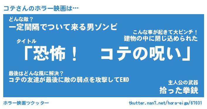 | 男性向けラノベタイトル風あだ名 | 『コテの憂鬱』『ノーゲーム・ノーコテ』 |