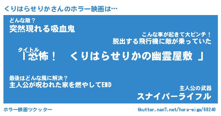 | 男性向けラノベタイトル風あだ名 | 『くりはらせりかの憂鬱』 |