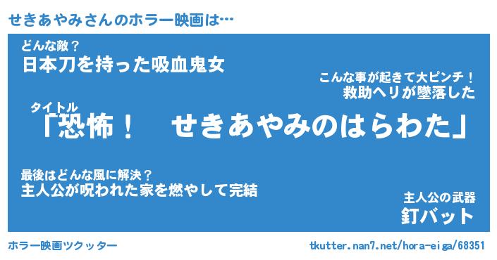 | 男性向けラノベタイトル風あだ名 | 『せきあやみの憂鬱』 |