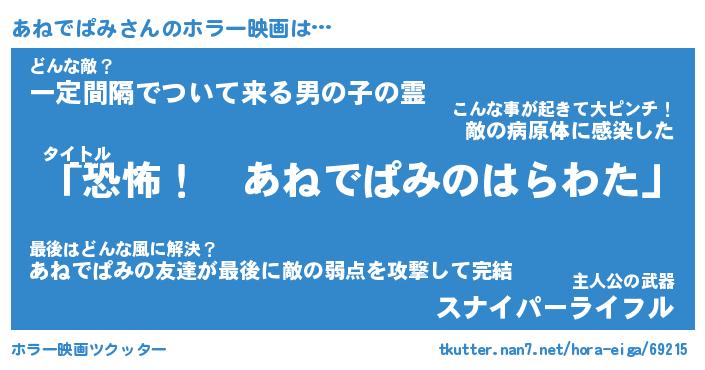 | 男性向けラノベタイトル風あだ名 | 『あねでぱみの憂鬱』 |