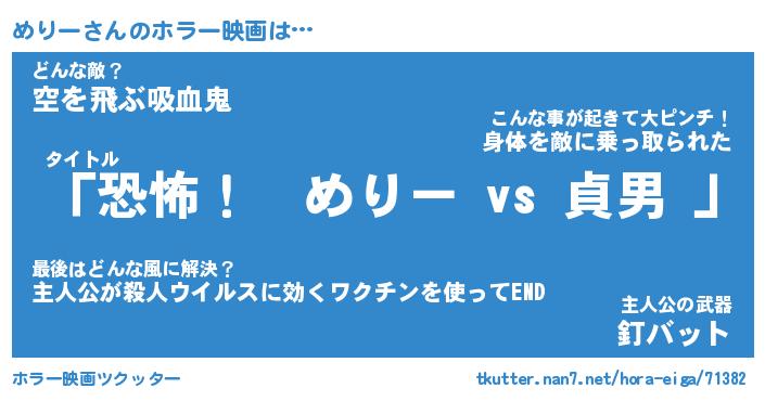 | 男性向けラノベタイトル風あだ名 | 『めりーの憂鬱』 |