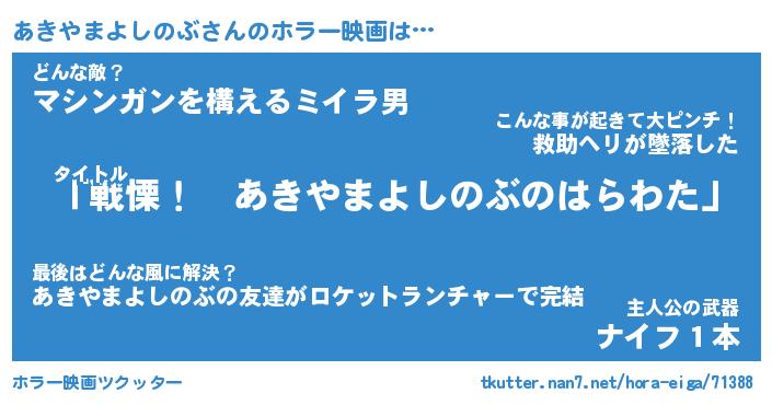 | 胡散臭い通販商品みたいなあだ名 | 『億万長者になれるブレスレット…その名も「あきやまよしのぶ」』 |