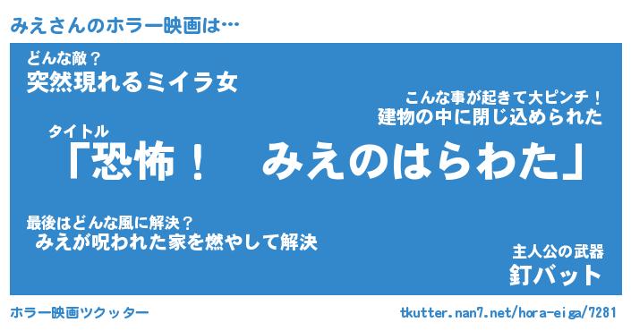 | 男性向けラノベタイトル風あだ名 | 『みえの憂鬱』『ノーゲーム・ノーミエ』 |