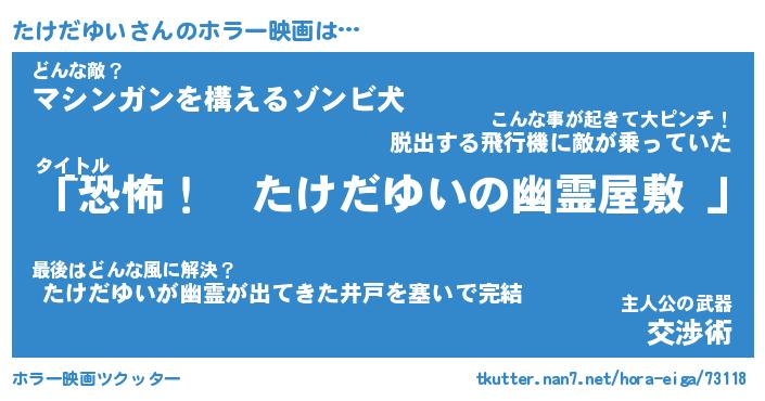 | ヘコむあだ名 | 『たけもー』『酢こんぶ』『たけ太郎』 |