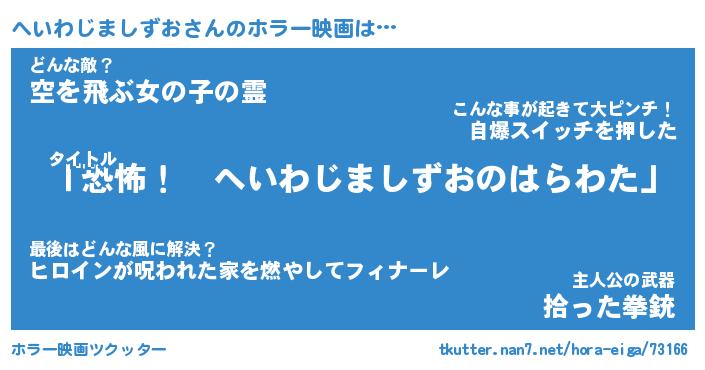 | 胡散臭い通販商品みたいなあだ名 | 『必ず成功するブレスレット…その名も「へいわじましずお」』 |