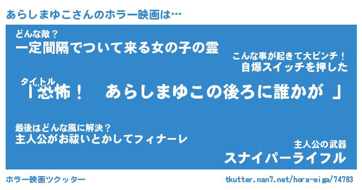 | 男性向けラノベタイトル風あだ名 | 『あらしまゆこの憂鬱』 |