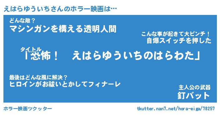 | 伝説のあだ名 | 『伝説の竜騎士えはらゆういち』 |