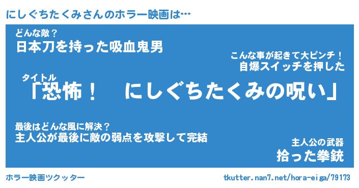 | 男性向けラノベタイトル風あだ名 | 『にしぐちたくみの憂鬱』 |