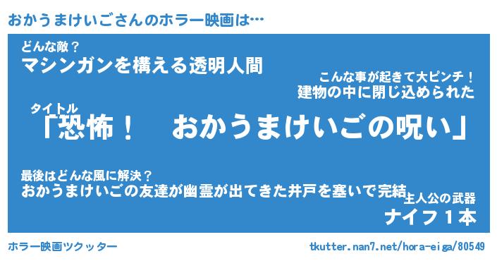 | 胡散臭い通販商品みたいなあだ名 | 『必ず成功するブレスレット…その名も「おかうまけいご」』 |