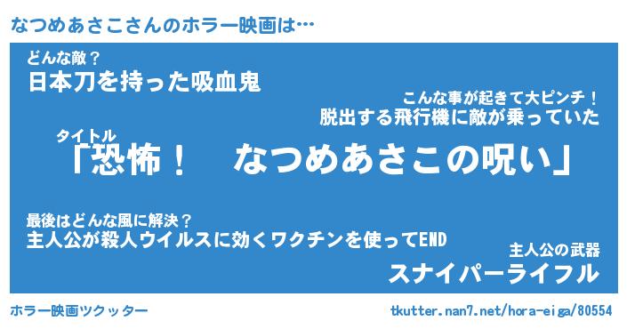 | ヒーロー風カッコイイあだ名 | 『スーパーナツメアサコ』『魔戒騎士ナツ』 |