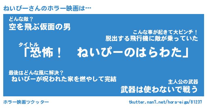 | 男性向けラノベタイトル風あだ名 | 『ねいぴーの憂鬱』 |
