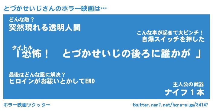 | 男性向けラノベタイトル風あだ名 | 『とづかせいじの憂鬱』 |