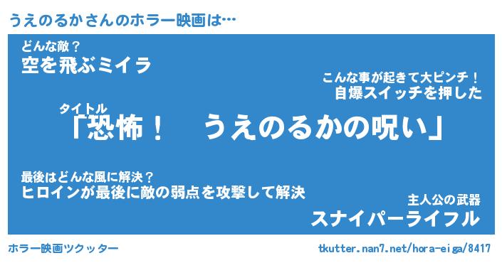 | 男性向けラノベタイトル風あだ名 | 『うえのるかの憂鬱』 |