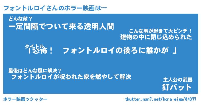| 男性向けラノベタイトル風あだ名 | 『フォントルロイの憂鬱』 |