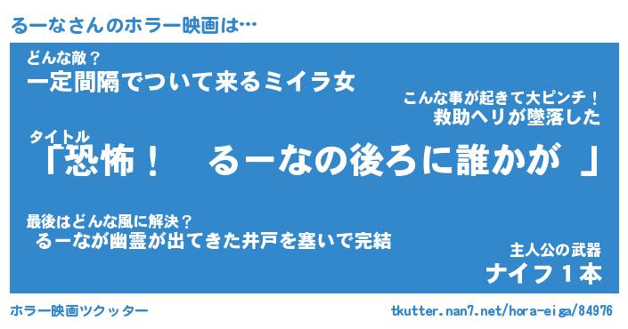 | 男性向けラノベタイトル風あだ名 | 『るーなの憂鬱』 |