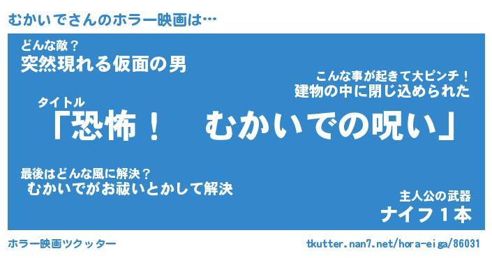 | 男性向けラノベタイトル風あだ名 | 『むかいでの憂鬱』 |