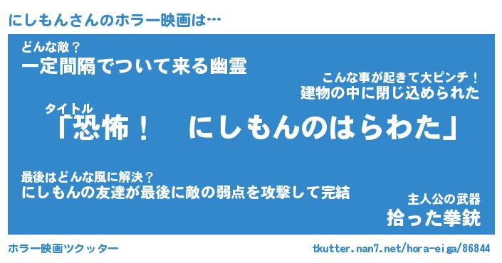 | 男性向けラノベタイトル風あだ名 | 『にしもんの憂鬱』 |