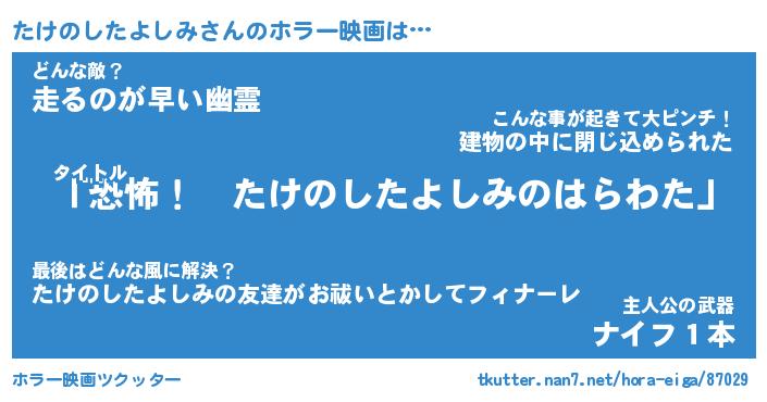 | 胡散臭い通販商品みたいなあだ名 | 『モテモテ間違いなしブレスレット…その名も「たけのしたよしみ」』 |