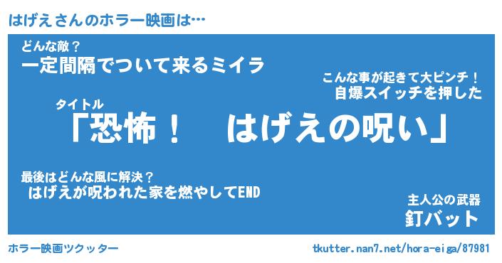 | ヒーロー風カッコイイあだ名 | 『スーパーハゲエ』『ウルトラはげえマン』 |