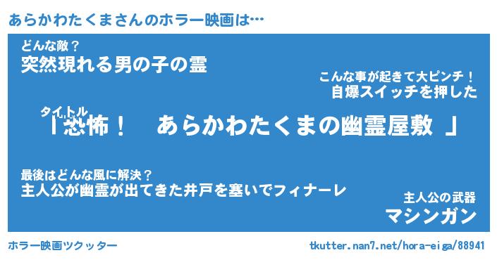 | 胡散臭い通販商品みたいなあだ名 | 『必ず成功する霊験あらたかなお札…その名も「あらかわたくま」』 |